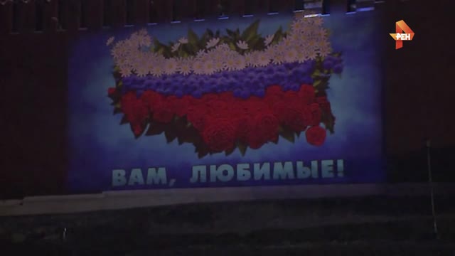 На нее спроецирован букет – по форме он совпадает с границами нашей страны. Под букетом размещена надпись - "Вам, Любимые". К всероссийской акции с этим названием присоединились сотни тысяч мужчин.