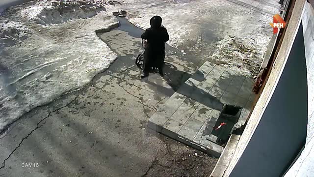 В распоряжении журналистов РЕН ТВ оказалось видео, полученное с камеры наблюдения, на котором запечатлено, как снег с крыши упал на коляску с младенцем в Новосибирске.