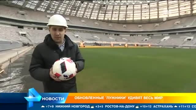 "Лужники" начинают новую жизнь. На одной из крупнейших спортивных площадок России стартовал финальный этап реконструкции. Основные работы пройдены, не считая мелких деталей, фактически осталось только навести порядок. Но уже сейчас видно, что реализовав масштабный строительный проект, удалось сохранить исторический облик легендарных "Лужников". В первую очередь это, конечно, Большая спортивная арена — даже ее фасад остался привычного для всех светло-песочного цвета. Внешние изменения лучше всего будут видны в темноте — у здания сразу несколько режимов подсветки. А главная гордость архитекторов — это крыша арены, которую превратили в самый большой медиаэкран в мире.