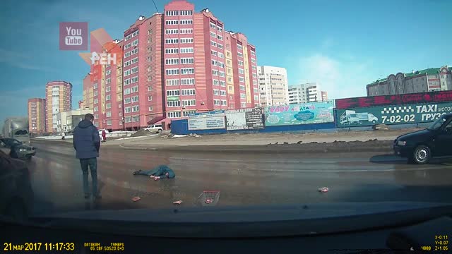 Видео: пешеход с продуктовой корзиной протаранил грузовик в Татарстане (18+)