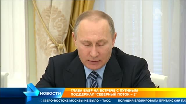 Сегодня же президент провел встречу с главой немецкого концерна БАСФ. Несмотря на антироссийские санкции, введенные Берлином, крупнейшие компании Германии стремятся развивать сотрудничество. В частности, речь шла о строительстве газопровода "Северный поток-2", в котором заметным акционером является и БАСФ. Владимир Путин отметил: этот проект не политический и обусловлен исключительно ростом потребления газа в Европе.