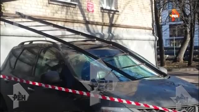 Видео: двое парней рухнули вместе с пожарной лестницей на авто с пятого этажа в Москве