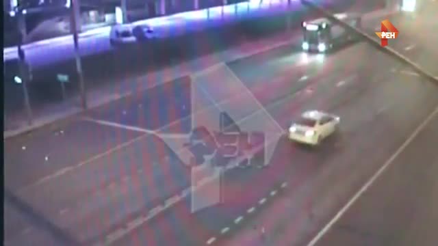 РЕН ТВ публикует видео страшного ДТП с байкером в Москве
