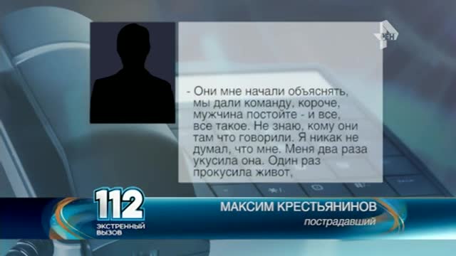 Молодой человек демонстрирует раны на плече и животе, поднимает футболку. В этот момент на него накидывается пес. Пострадавшего тут же уводят. Он зафиксировал травмы и намерен подавать в суд.