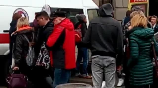 Сотни людей толпятся у станций метро в Санкт-Петербурге, где прогремели взрывы. На кадрах видео пострадавшим оказывают помощь сотрудники медицинских служб.