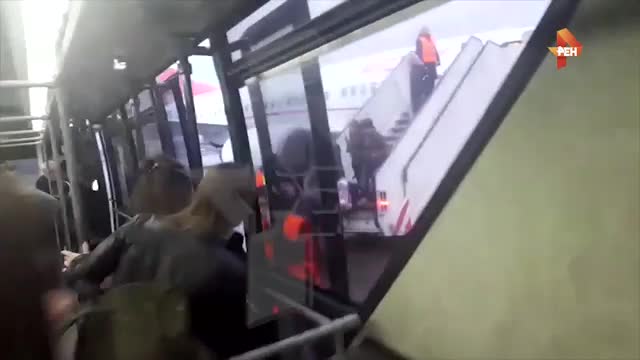 Персонал московского аэропорта Внуково пытался запретить пассажирам снимать выкатившийся с полосы лайнер. На кадрах записи, сделанной очевидцами, видно, как женщина в оранжевой "спецовке" кричит на них в автобусе: "Не снимать!"