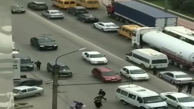 Торопясь уехать, водитель протаранил пассажирскую маршрутку. В результате второго ДТП пострадали 12 человек, в том числе дети. Покалеченные люди, по данным "Комсомольской Правды", находятся в больнице. Сбитый же водителем мужчина от полученных травм скончался на месте аварии.