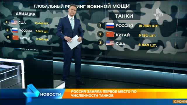 При этом по количеству танков Россия вне конкуренции. Мы опередили всех оппонентов, став государством с самой большой сухопутной армией: на защите нашей родины 15 тысяч 398 танков. У Америки в два раза меньше, примерно столько же в Поднебесной.