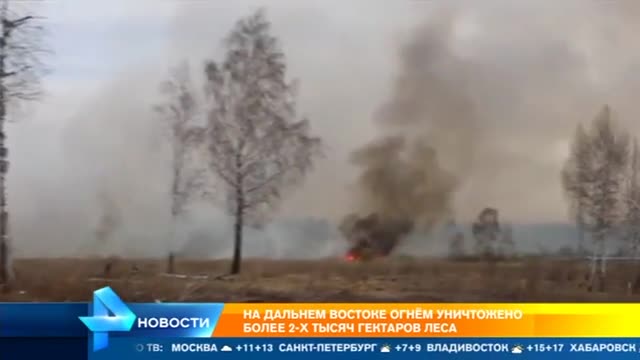 В огне Амурская область, Приморье и Хабаровский край, первые очаги замечены также на Камчатке и Колыме. К этому часу пожары полностью уничтожили более 2 тысяч гектаров леса.