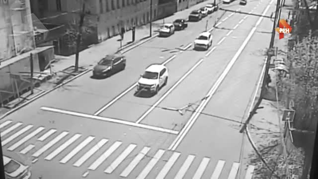 РЕН ТВ публикует видео последствий произошедшей в центре Москвы аварии с участием автомобиля Infiniti.