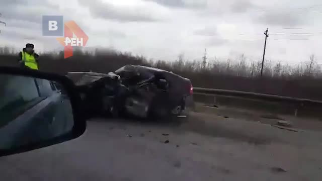 На 725 километре трассы Тюмень — Ханты-Мансийск легковой автомобиль "Лада Приора" выехал на встречную полосу и столкнулся с автобусом "Мерседес Бенц".