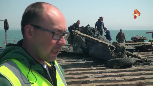 Ранее экипаж плавучего крана, который задействован в основных строительно-монтажных работах по возведению Крымского моста, помог поисковикам в преддверии Дня Победы поднять со дна Керченского пролива самолет времен Великой Отечественной войны.