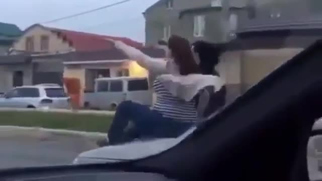 В Сети появилась видеозапись, быстро ставшая предметом острых обсуждений в социальных сетях. На ролике запечатлены две молодые девушки, катающиеся по вечерней Махачкале на капоте легкового автомобиля.