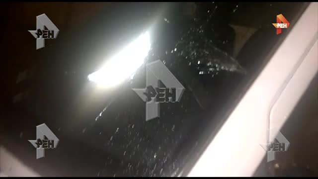 На кадрах можно увидеть карету медиков с повреждениями на стекле.