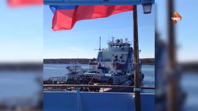 Видео буксировки теплохода, севшего на мель под Череповцом