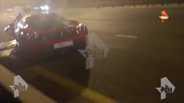 Как сказано в материале, автомобиль "Феррари" въехал в "Рено", который вез на тросе "Пежо" ("Феррари" решил их обогнать). В результате трос оборвался, и одна из машин перевернулась. Два человека, находившиеся в салоне, погибли на месте.