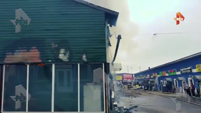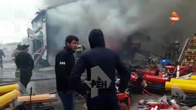 Появилось видео пожара, охватившего строительный рынок в Подмосковье