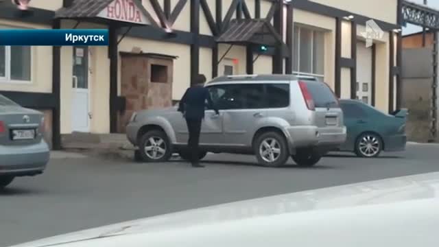 Видео: очень пьяный мужчина в Иркутске пытался открыть авто странным способом