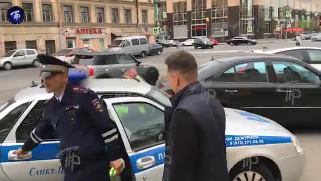 Машину юмориста Ильи Соболева остановили автоинспекторы для проверки документов.