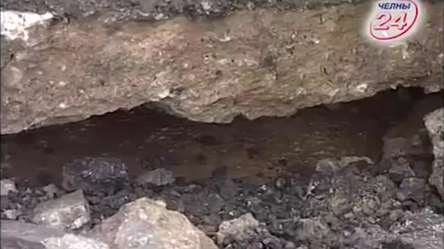 На пересечении проспекта Дружбы Народов и улицы Раскольникова в Набережных Челнах днем 25 мая обвалился асфальт. Посреди перекрестка образовалась огромная яма.