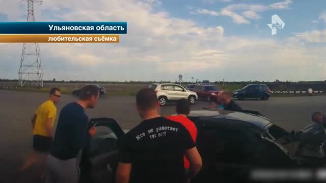 Под Ульяновском произошла огненная авария — лихач на высокой скорости протаранил легковушку.