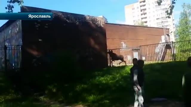 В Ярославле один из дворов посетил необычный гость. Очевидцы, вооружившись камерами мобильных телефонов, снимали, как лось блуждает вдоль металлического забора.