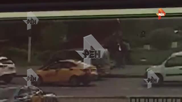 Камера сняла гибель пожилого мужчины в Москве, задавленного остановкой, за которой он прятался от урагана. Жуткий инцидент произошел на Кировоградской улице.