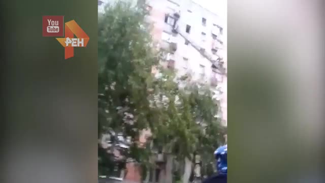 Видео: Голый мужчина, угрожавший сброситься с 9 этажа, соскользнул и упал на дерево