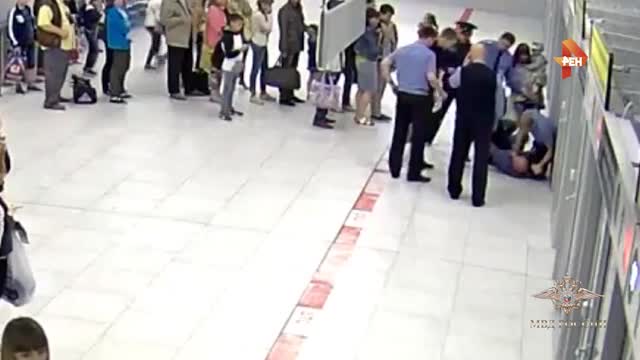 Пьяного папу пыталась успокоить даже маленькая дочка, однако мужчину это не остановило. Раздосадовала его якобы длинная очередь на контроль.