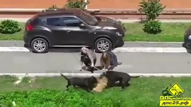 Видео: огромные черные псы едва не разодрали старушку с таксой во Владивостоке