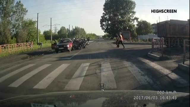 Страшные кадры: в Новокузнецке мотоцикл влетел в автомобиль и перевернулся