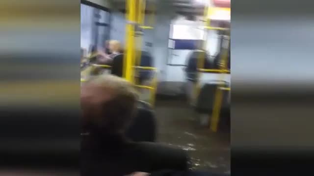 Очевидцы запечатлели ситуацию внутри автобуса, который наполовину затонул во время движения по маршруту. На момент происшествия внутри транспорта находились пассажирами.