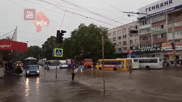 Некоторые районы Симферополя затопило после продолжительного ливневого дождя. Как видно на записи, под воду частично ушла площадь возле ж/д вокзала. Как рассказал заместитель главы администрации города Александр Овдиенко, информации о серьезных происшествиях не поступало, передает РИА "Новости".