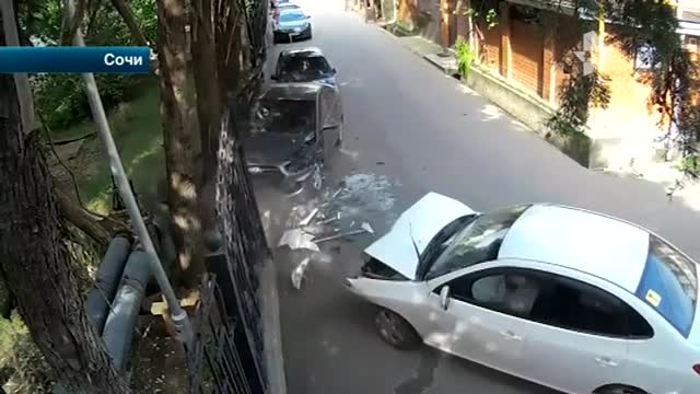 Видео: В Сочи иномарка на полном ходу протаранила припаркованную машину