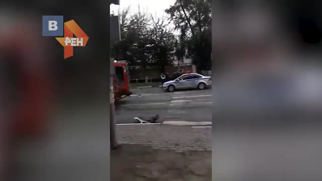 На кадрах видно, что после столкновения маршрутка перевернулась. На месте работают экстренные службы.