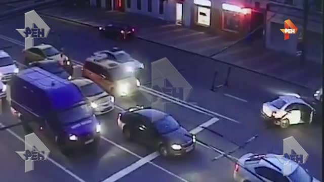 Камеры наблюдения зафиксировали погоню полиции за нарушителем, которая привела к ДТП в центре Москвы