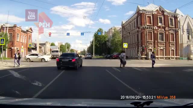 Видео: лихач на "Мерседесе" едва не задавил пешеходов, проезжая на красный