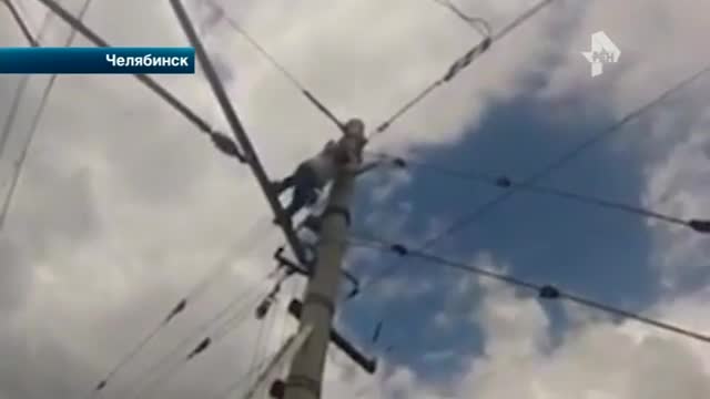 Видео: челябинский экстремал забрался на высоковольтный столб