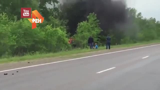 Легковушка попыталась обогнать "скорую", но водитель не успел завершить маневр и врезался в реанимобиль. Медтранспорт после удара вылетел в кювет и перевернулся, легковушку отбросило на несколько метров дальше, и она загорелась.