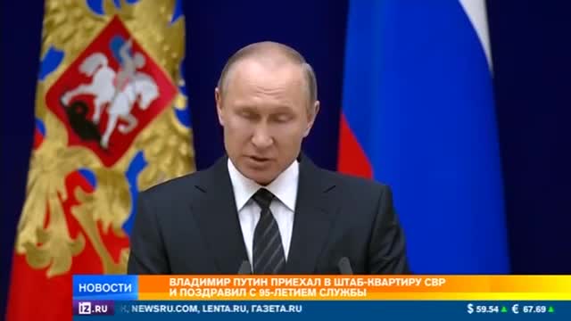 Этим вечером Владимир Путин приехал в штаб-квартиру Службы внешней разведки. Повод особый — сегодня отмечают 95-лет со дня основания этой структуры. Глава государства подчеркнул: на разведчиках лежит огромная ответственность, их профессионализм гарантирует стабильность в стране.