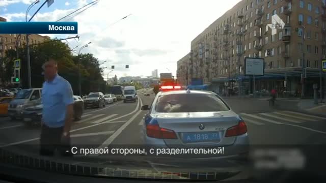 Видео: в Москве полицейский едва не спровоцировал ДТП