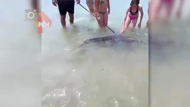 Ранее в одной из социальных сетей появилось видео, на котором мужчина выгуливает по пляжу крокодила на поводке. В подписи к видео сообщается, что дело происходит в Анапе. Вокруг рептилии много народу, дети даже гладят крокодила.