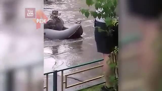 В Сети появилось видео, снятое в Одинцовском районе Подмосковья. На ролике, сделанном одним из жителей, мужчина вышел из дома и стал кататься по затопленным улицам на надувной лодке.