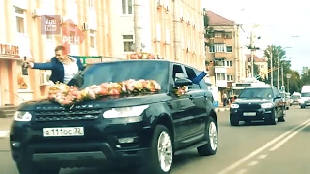 Как сообщает "БрянскToday", молодые люди буквально вылезли из салона авто. В руках они держат бутылки шампанского и пытаются дотянуться друг до друга, несмотря на высокую скорость и оживленную дорогу.