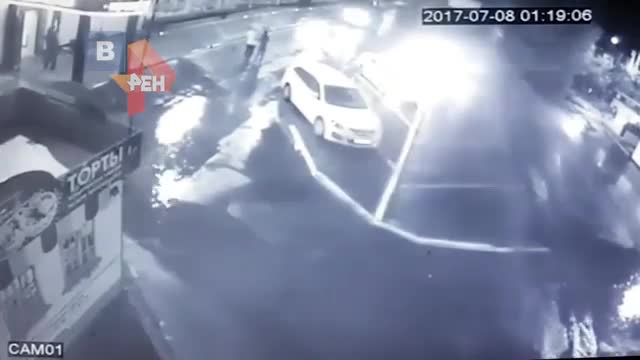 В Сети появилось видео с камер наблюдения, которые зафиксировали гонки пьяных девушек на автомобиле в Чите.