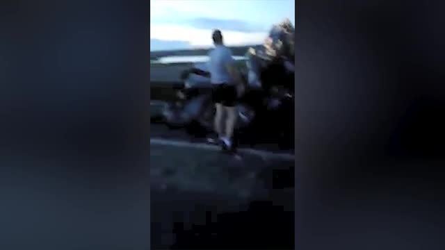 По данным очевидцев, водитель фуры протаранил пять легковых автомобилей.