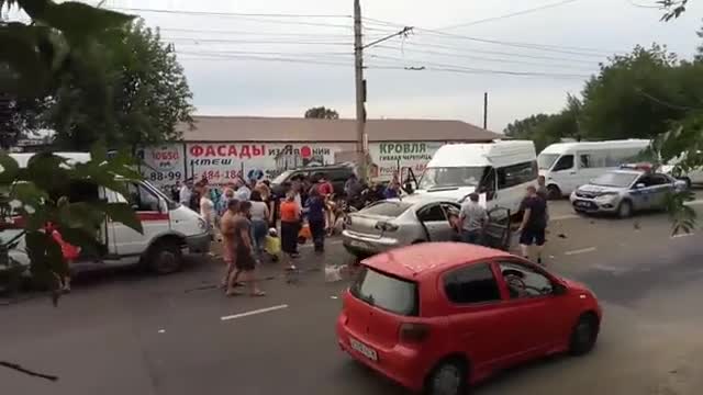 Напомним, эта авария произошла сегодня днем на улице Рабочего Штаба. Предварительно, микроавтобус "Фиат" и легковушка "Мазда" столкнулись лоб в лоб, в результате чего, по неподтвержденным данным, пострадали 14 человек, в том числе трое детей. Причины произошедшего пока неизвестны.