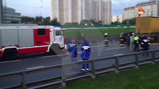 РЕН ТВ публикует видео с места смертельной аварии с BMW в Москве
