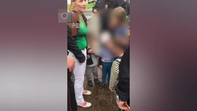 На кадрах, которые появились в Сети, видно, что женщина с ребенком просит правоохранителей отпустить ее.