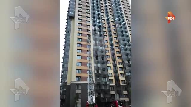 На кадрах видео видно, что сотрудникам МЧС понадобилась спецтехника, чтобы снять тело несчастной с фасада здания.